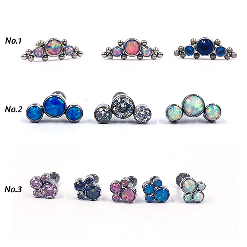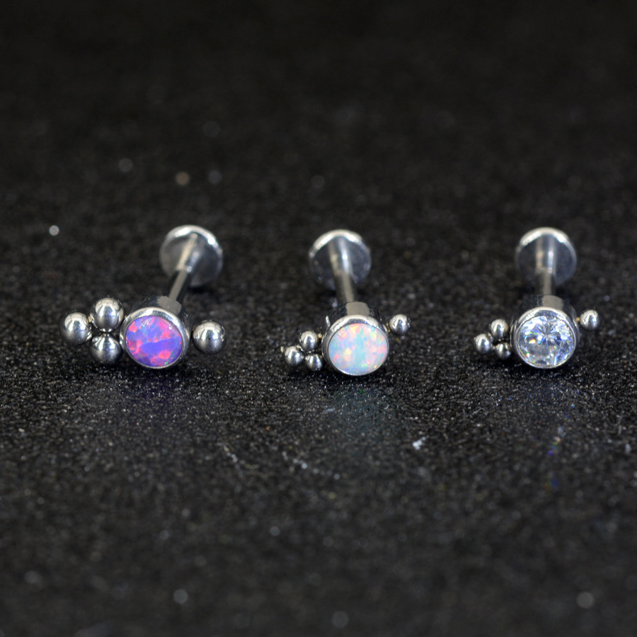 G 23チタン四爪は5A皓石唇釘の外歯をはめ込んで、耳の骨釘のピアスF136チタン合金の穿刺アクセサリーを交換します。