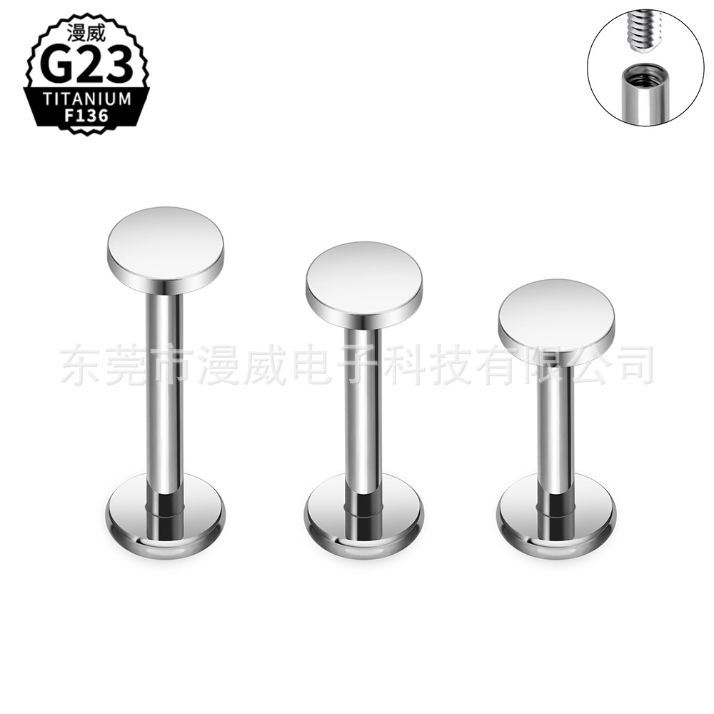 ASTM-F136チタン合金穿刺内歯円餅唇釘平面ピアスクロスボーダーG23チタンアクセサリー耳骨釘