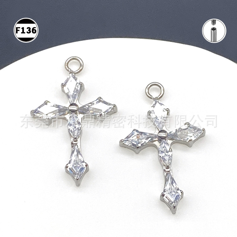 G 23チタン合金モザイク5a角型クラウンめねじピアスピアスアクセサリークロスボーダー電気商F136インプラント級