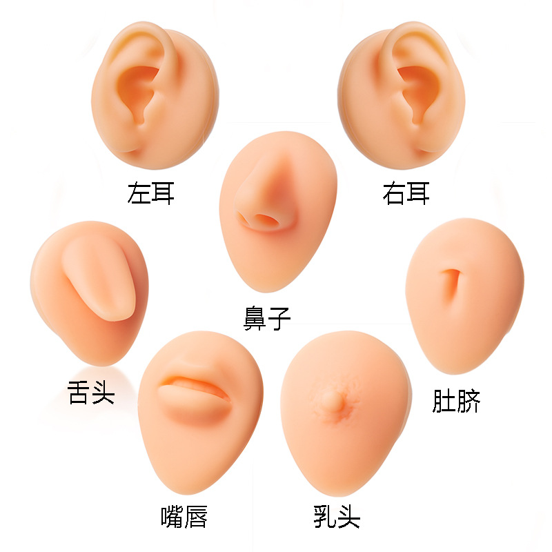 柔らかいシリカゲル人の耳の唇の鼻のへその乳首の舌などの多種の穿刺のアクセサリの教育をシミュレーションしてモデルを撮影します。