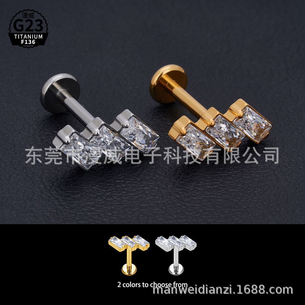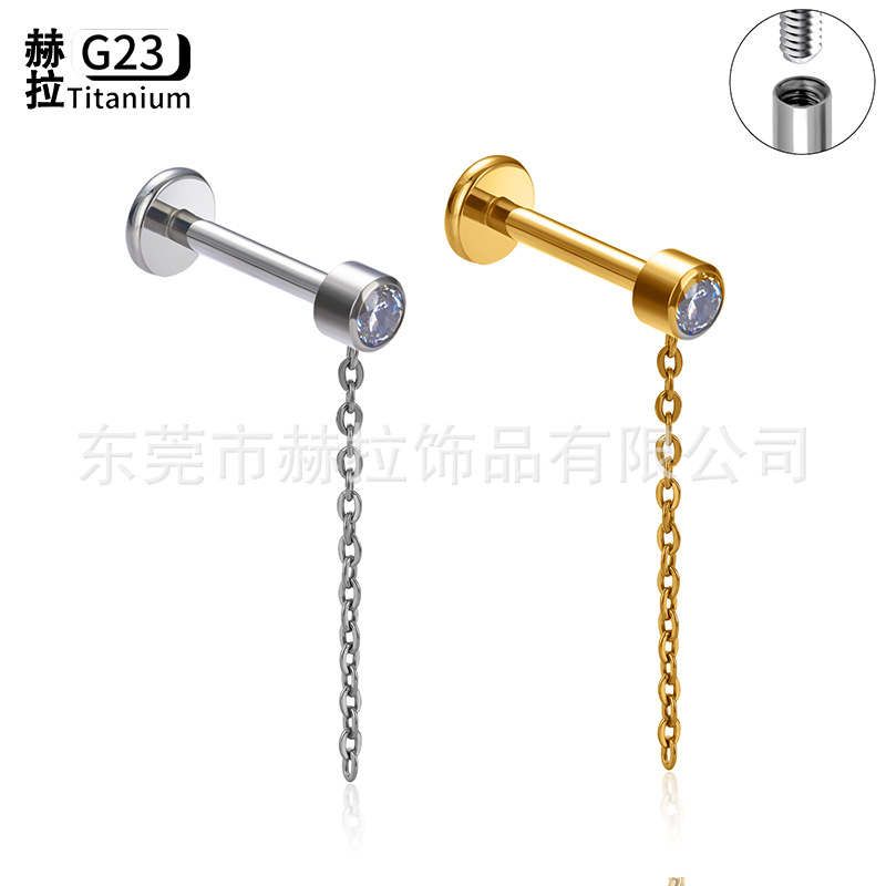 クロスボーダーg23インプラント級人体穿刺アクセサリー唇釘f136手作りファッションモザイクジルコンチェーンピアス