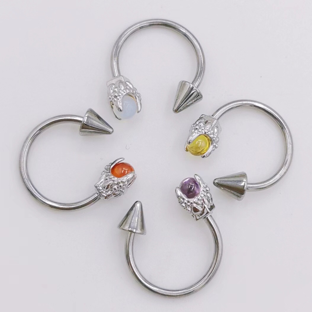 国境を越えた新製品龍爪尖頭乳白石唇環唇釘ステンレスピアス鼻環パンク小衆甘酷