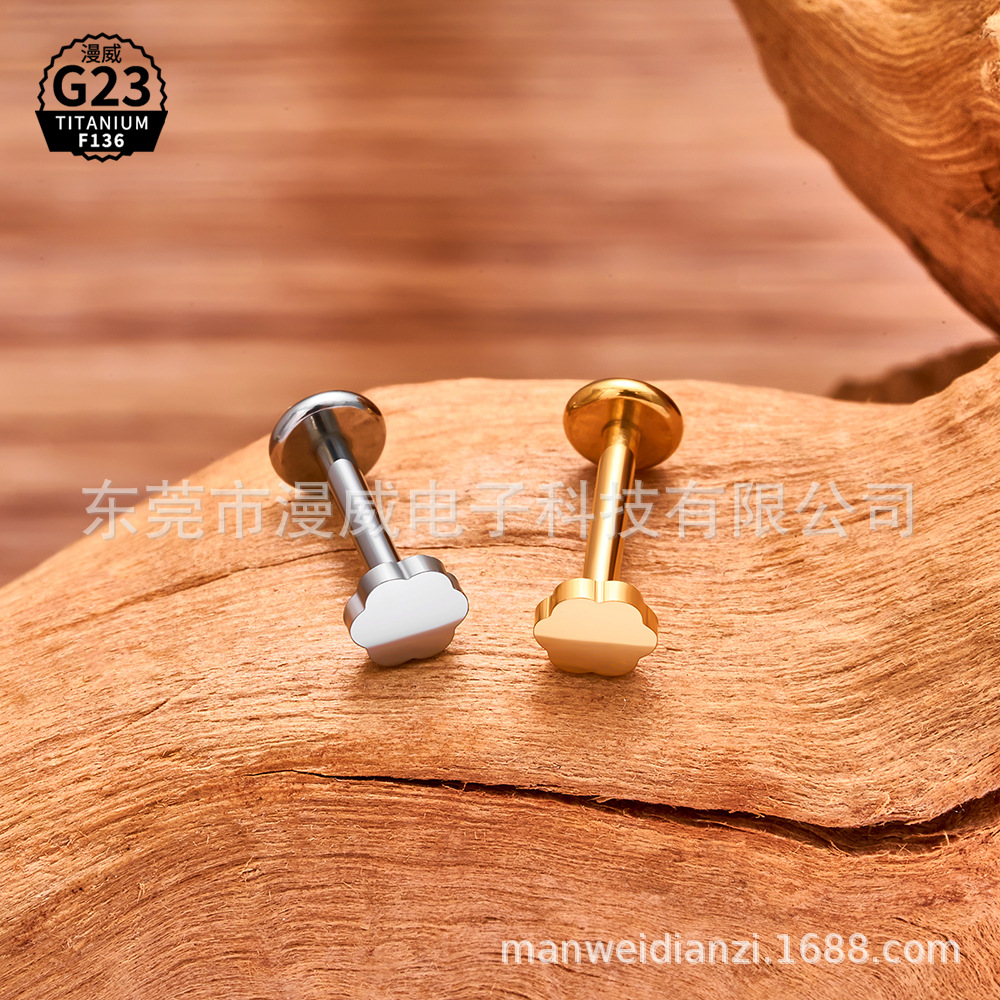 F136チタン合金豪宝花猫爪溶接小球唇釘耳骨釘耳ウォーム釘クロスボーダー工場直販