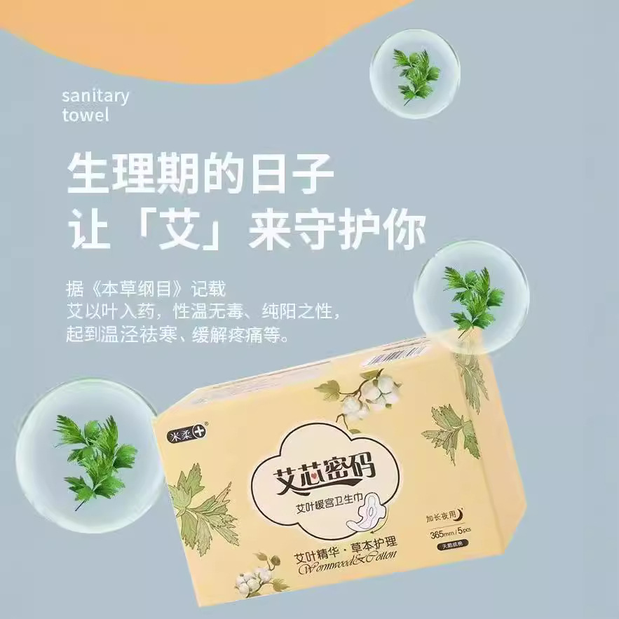 よもぎの香りの生理用ナプキン、箱ごと一括、柔らかく、軽く、通気性が高く、夜用、敏感肌用の綿の柔らかいおばさんナプキン