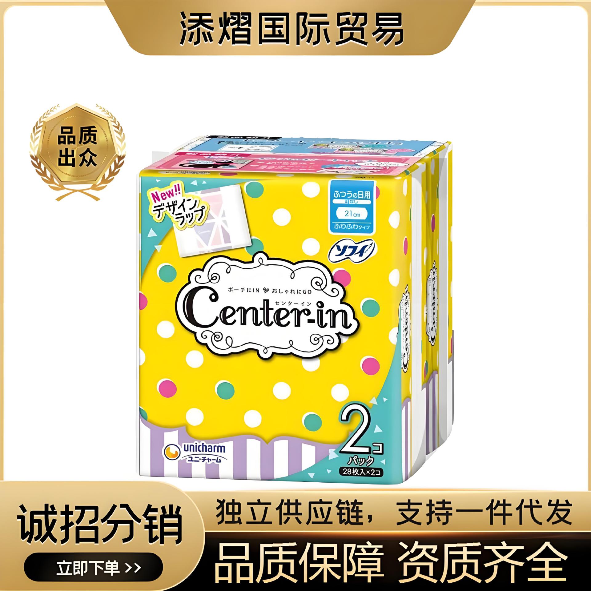 日本輸入ユニカセンター-IN黄点薄タイプ綿柔日用生理用ナプキン無保護翼無蛍光剤