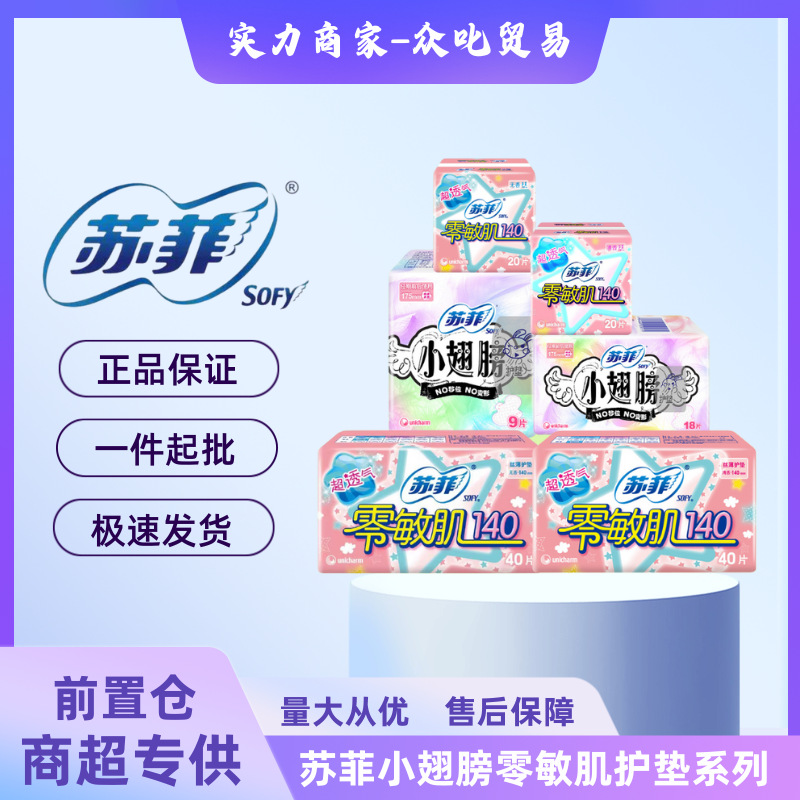 ソフィー パンティ パッド、生理用ナプキン、小さな羽、無香料/香りの生理用ナプキン、昼夜用、全箱送料無料の卸売と卸売