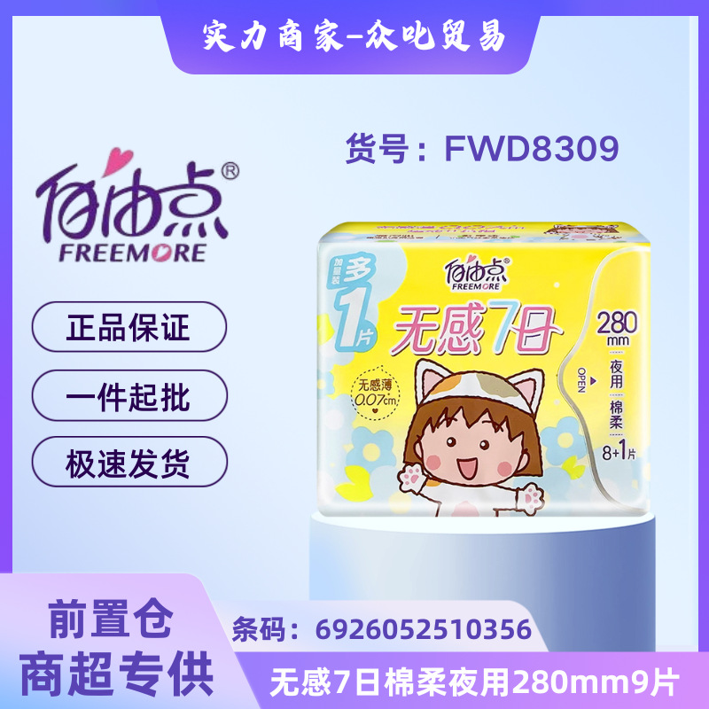 卸売り菲苏生理用ナプキン8枚入り綿柔日用叔母タオル230弾力肌着極薄全箱卸売り0247