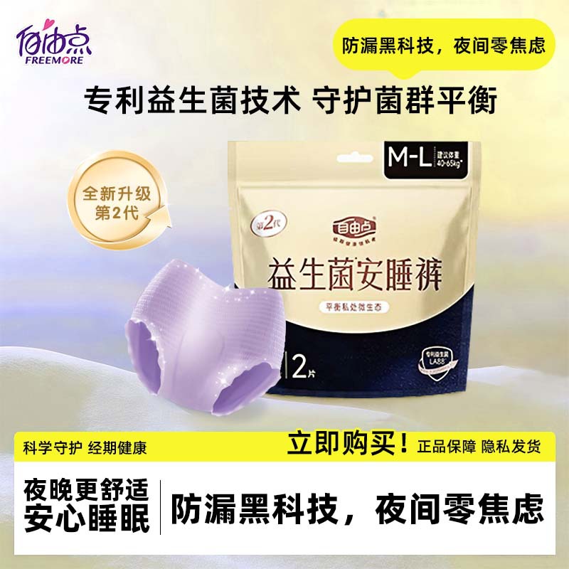 フリーポイントプロバイオティクススリーピングパンツ、夜用大容量、横漏れ防止安全パンツタイプ生理用ナプキン、女性の健康とプライベートケア