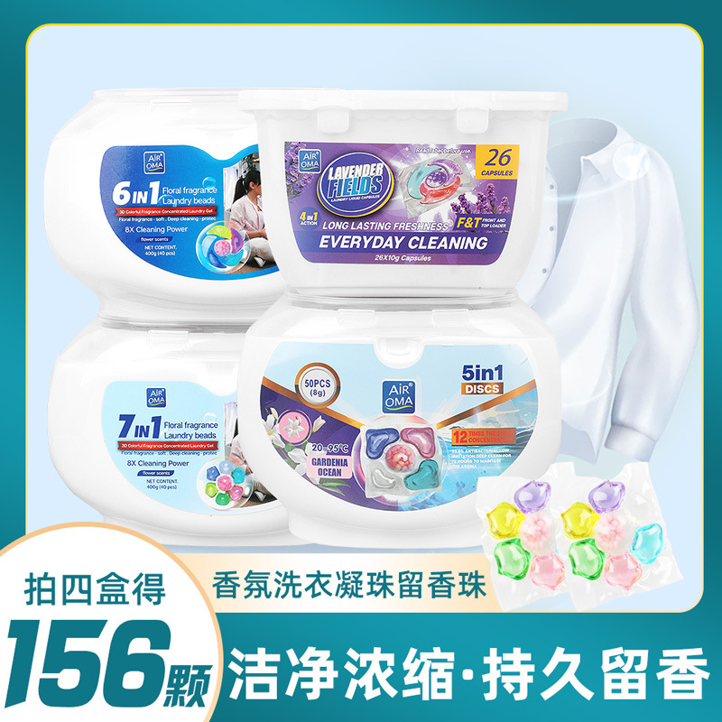 Air OMA フレグランス ランドリー ビーズ ボックス マルチエフェクト 濃縮抗菌、色保護、汚れ除去、黄斑ランドリー ボール
