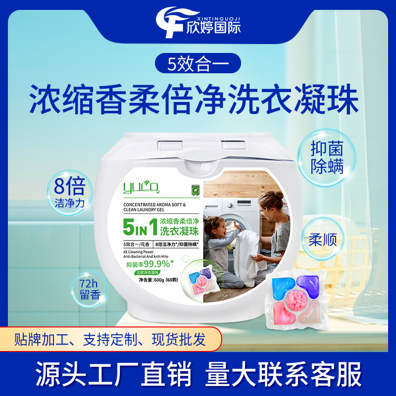 クロスボーダー 8X ランドリービーズ ファミリーパック 5 イン 1 長持ちするフレグランスビーズ 洗濯洗剤ボックス クリーニング洗濯カプセル ホーム