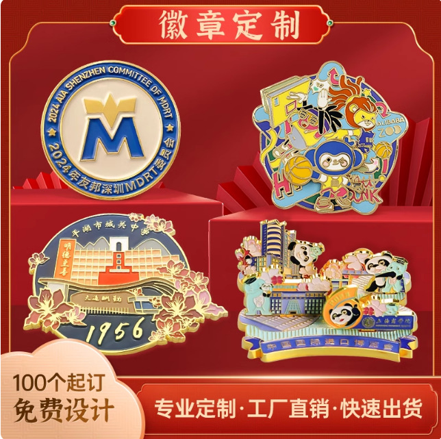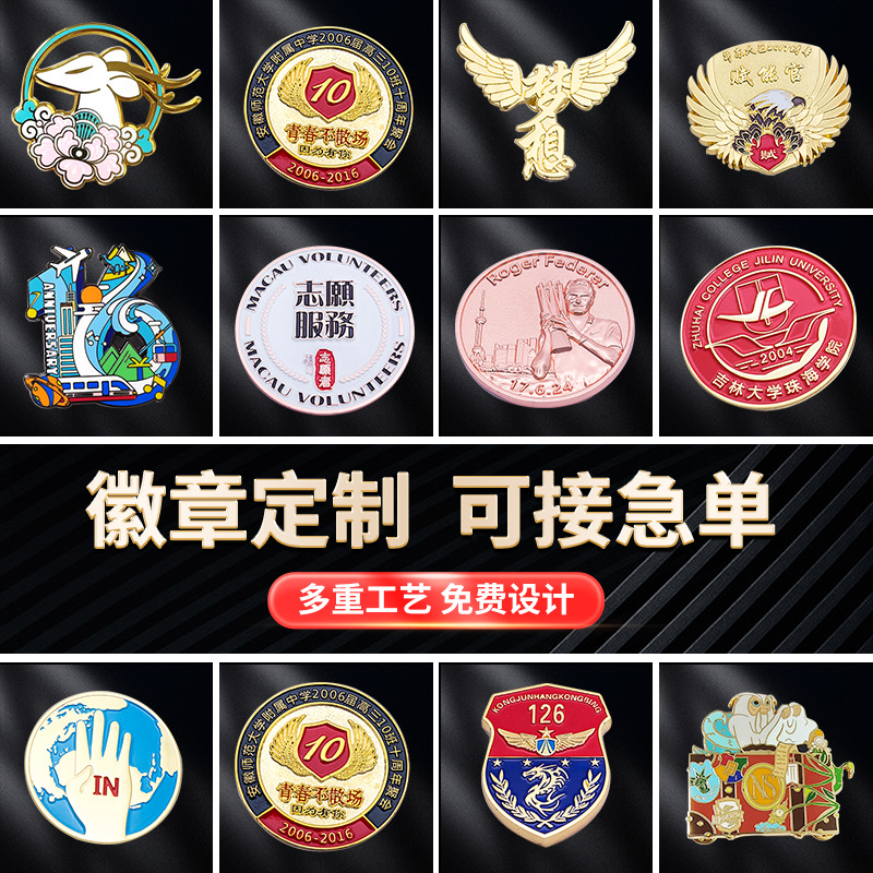 金属エナメルバッジブリキバッジ校章焼付塗装滴ゴム記念章会社ロゴ記念バッジ制作