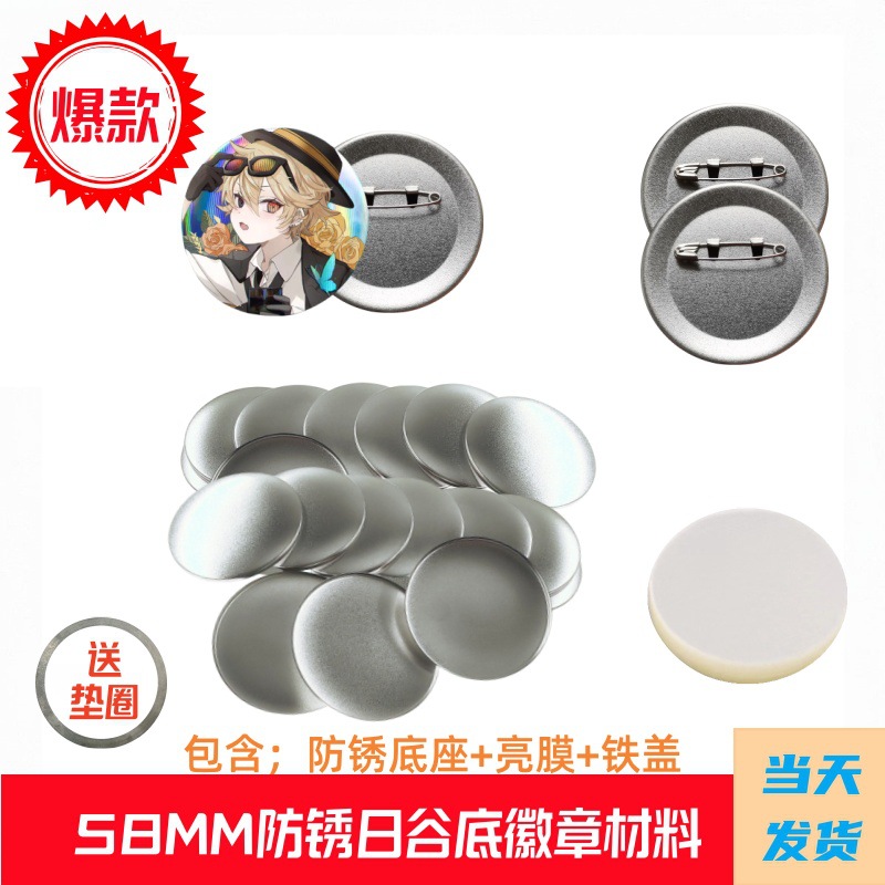 58MMバッジ材料金属厚手バーブリキバッジ消耗品ダブルフラッシュDIY日谷バッジ勲章
