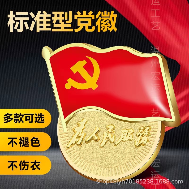 金属バッジの現物は人民サービス勲章亜鉛合金の磁石強磁標準新型党章バッジです。