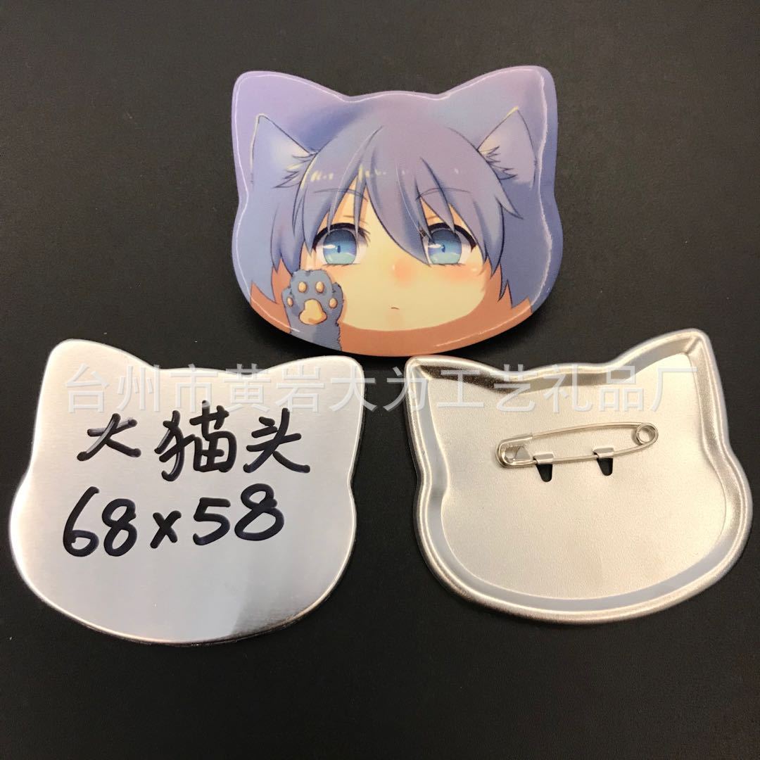 楕円形の猫の頭猫の顔特殊形状バッジ消耗品ピンタイプブリキバッジ生産品質ブランク素材