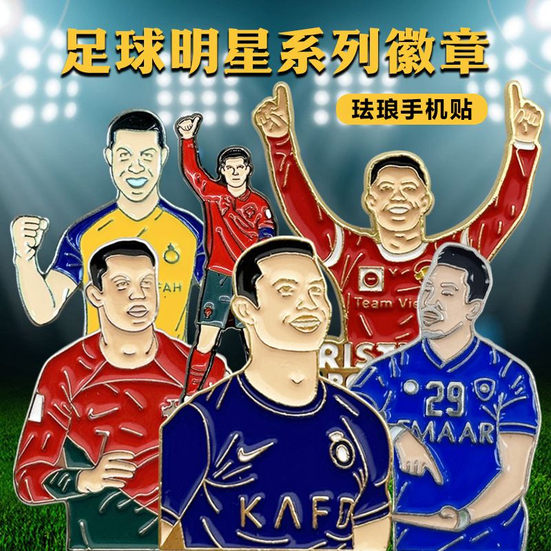 チャンピオンズリーグワールドカップサッカースターロナウドメッシムバペ金属バッジ携帯電話バッジお土産卸売