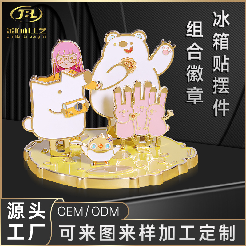 スプライシング組み合わせバッジカスタム電気メッキ塗装 UV 印刷プロセス冷蔵庫マグネットプラグインセットカスタムメイドの金属バッジ