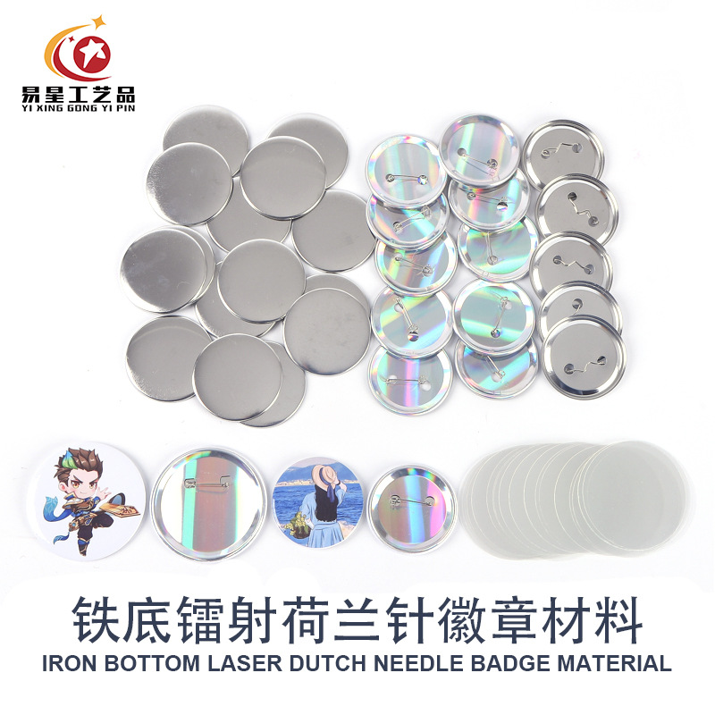 レーザー加工DIYダブルフラッシュメタルバッジ材料、オランダ製ピンブランク素材、卸売クリエイティブバッジ