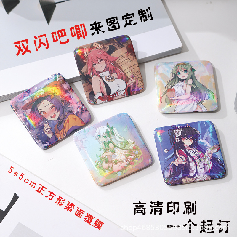 5mm正方形のダブルフラッシュのブリキのバッジのスターの周辺のアニメの同人の広告の宣伝のq版の顔写真