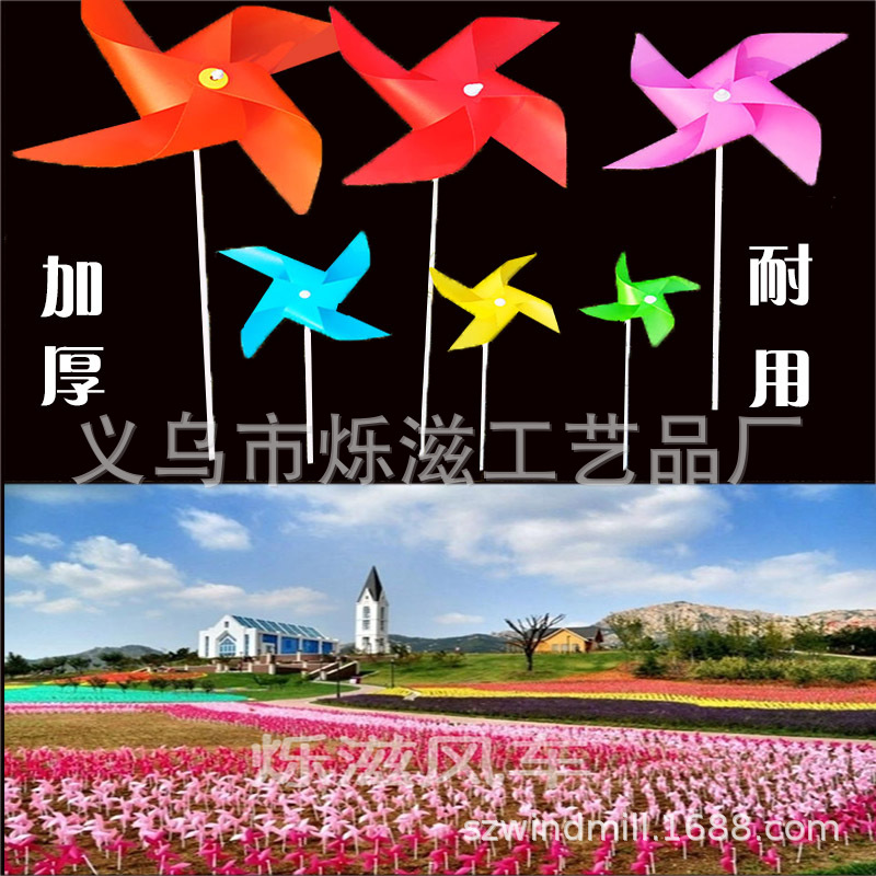 厚い四葉純色風車卸売りメーカーdiy屋外祝日幼稚園観光地区装飾プラスチック小風車