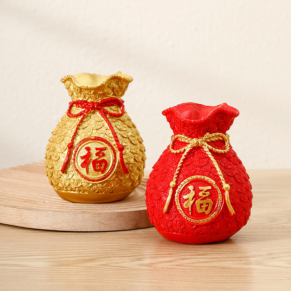 卸売りの金色の赤い福袋のお金の袋の麦の穂の花瓶の家庭の客間の玄関の引っ越しの樹脂の工芸品の置物