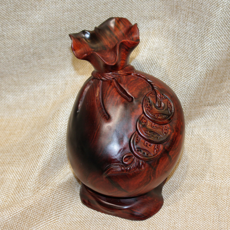 中式家居桌面吉祥红木实木吉祥物钱袋摆件酸枝木手工雕刻代代平安