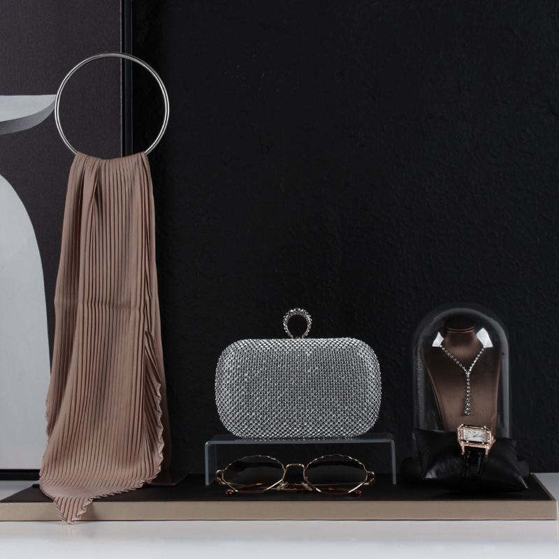 贅沢なサンプルの部屋のタンスのフードの間の柔らかい装飾品のメガネのハンドバッグの腕時計の化粧台の窓の飾り物の道具