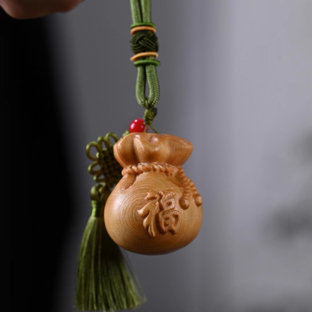 崖柏木彫りのハンドルの福袋のペンダントの創意的な車は子供の小さい贈り物の工芸品のお金の袋の文を掛けて仕事をします。