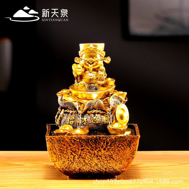 新天泉招財流水置物循環水オフィスリビングデスクトップ置物フロント招財装飾移転礼