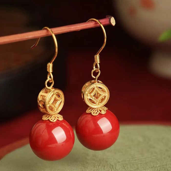 天然南紅瑪瑙の玉のイヤリング925銀の包みの金の民族の風の花の耳飾りの大気の優雅な女性のイヤリング