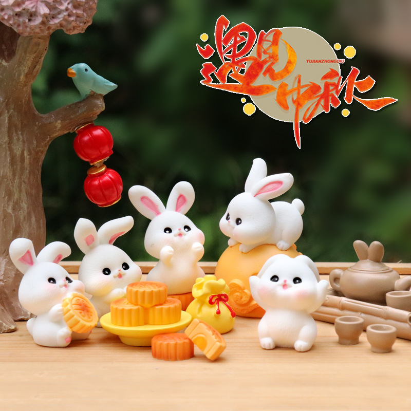 中秋節漫画バニーブラインドボックスおもちゃかわいいウサギ月餅モデル樹脂アクセサリークリエイティブマイクロ風景小さな装飾品