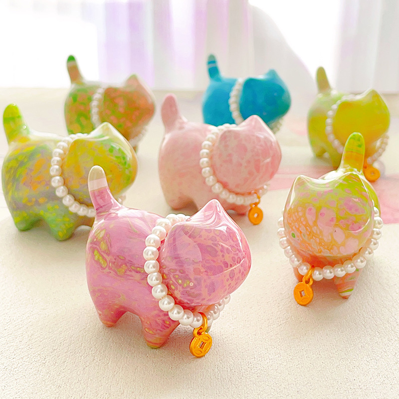 檀木のカラーの大きい漆の子猫のネットの紋様の彩色の工芸の家庭の置物の国の潮の文はDIYのペンダントの子猫の卸売りを遊びます。