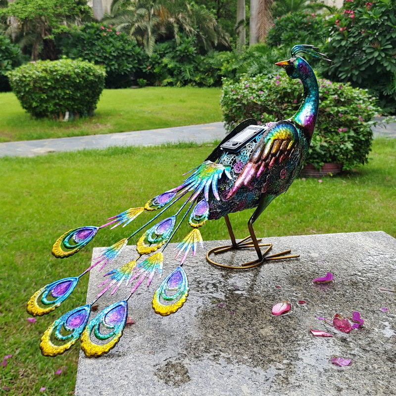 田園庭園花園装飾鉄皮動物輸出対外貿易太陽灯発光光る鉄芸孔雀置物