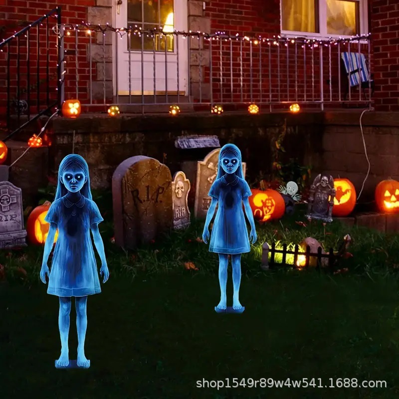 ハロウィンメタルヤードサイン悪霊屋外ガーデンパイルホリデーパーティーデコレーション2個