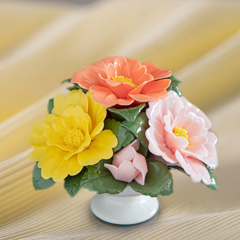 ミニ陶磁器の手作りの小さい花のかごは純粋な手作りのつまみの花のバラの少女の心の贈り物の小さい置物の客間の装飾品です。