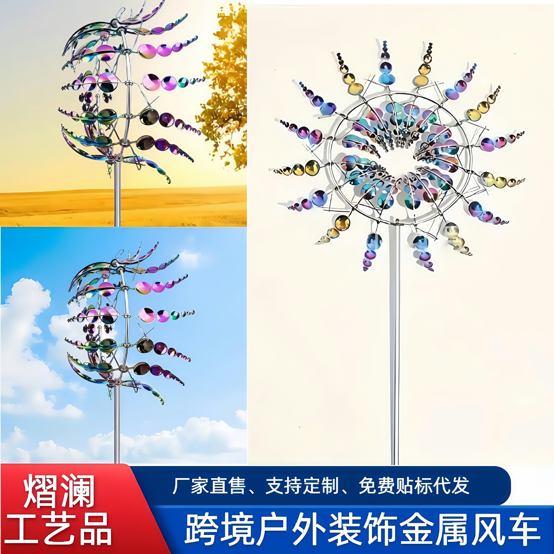 国境を越えた屋外金属鉄芸カラー回転創意カラーガーデン風車飾り