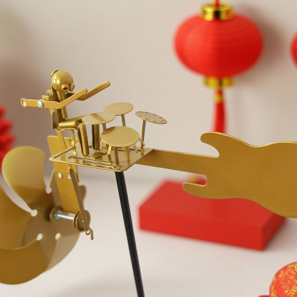 クロスボーダー鉄芸金属花園装飾ドラマー風車置物園芸風動力回転プラグイン屋外庭園