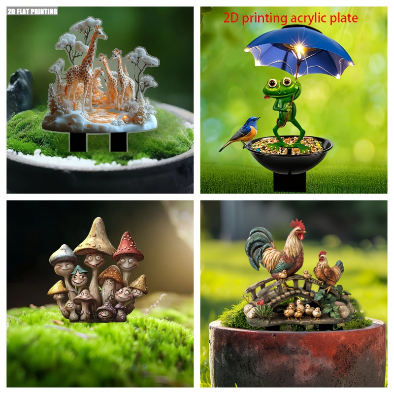 クロスボーダー田園風景動物シリーズアクリル屋外花園標識地に芝生の鉢植えの装飾道具を挿します。