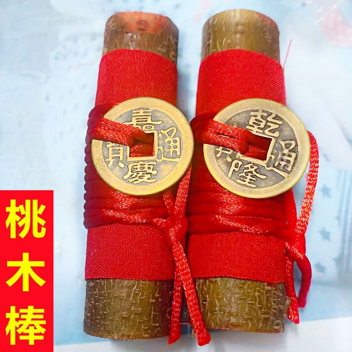 野生の桃の木の東南の枝の古い桃の木の棒のマスコットの置物は桃の枝のペンダントの桃の木の工芸品を携帯します。