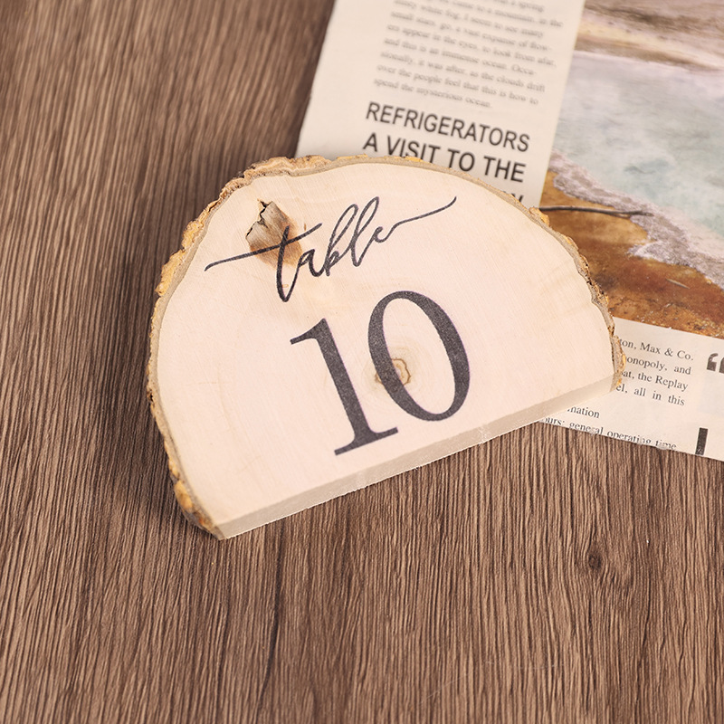 創意半円木片披露宴テーブル番号札置物原生態帯樹皮木造席札