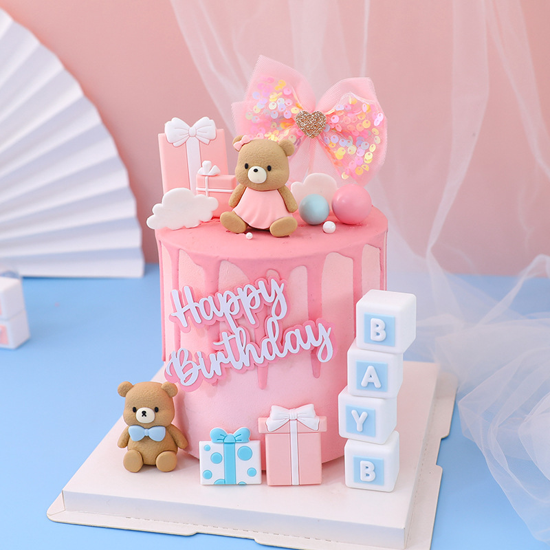 漫画のかわいい熊の装飾の家の置物の粉の柔らかい赤ちゃんの熊の車のカップルの贈り物の3d滴のゴムの公の子供の積み木