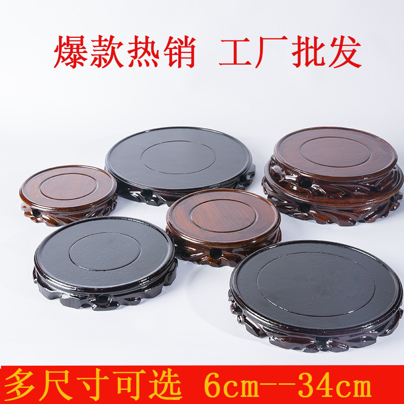 実木円形根彫刻台座赤木植木鉢花瓶奇石仏像置物客間香炉木質紫砂台座