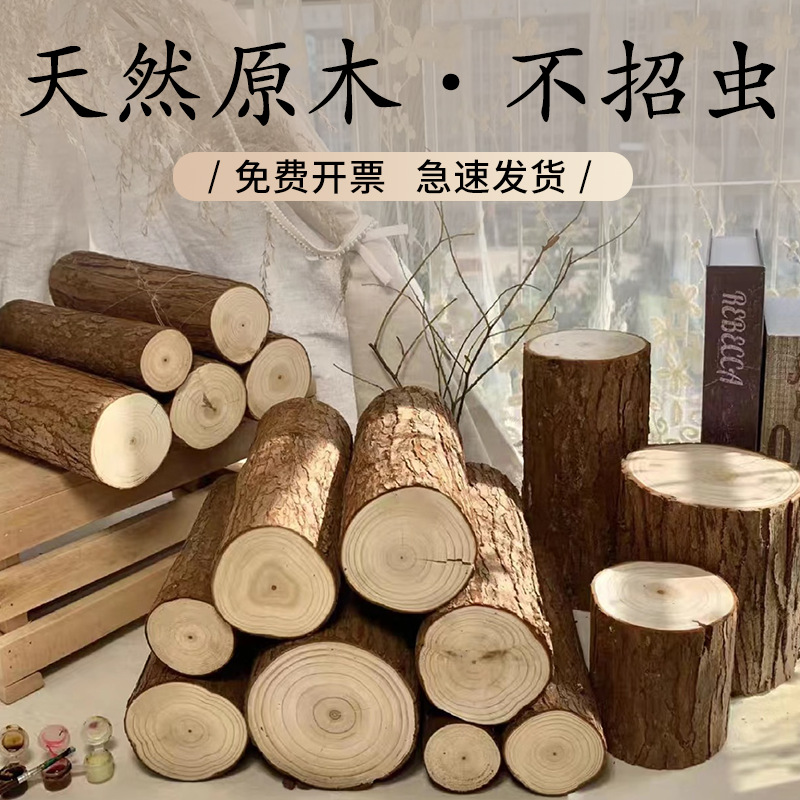 暖炉は木の小さな杭を飾って、リビングのテーブルの上の家庭の置物の木材の原木の杉の木の木の薪の切り株を作ります。