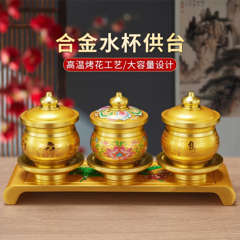 新しいスタイルの仏堂の合金の聖水の杯の仏像の前の酒の器の杯の浄水の杯の給水のコップの家庭用の客間の置物