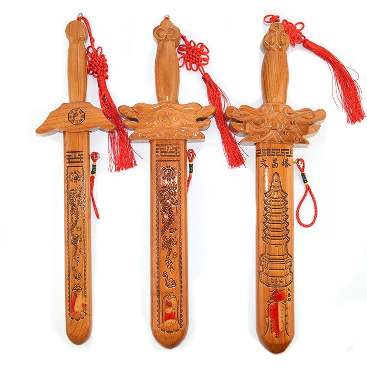 40センチの桃の木の剣のペンダントは厚い七星の剣の文昌の卸売りの木の彫刻の観光地区の露店の卸売りを厚くします。