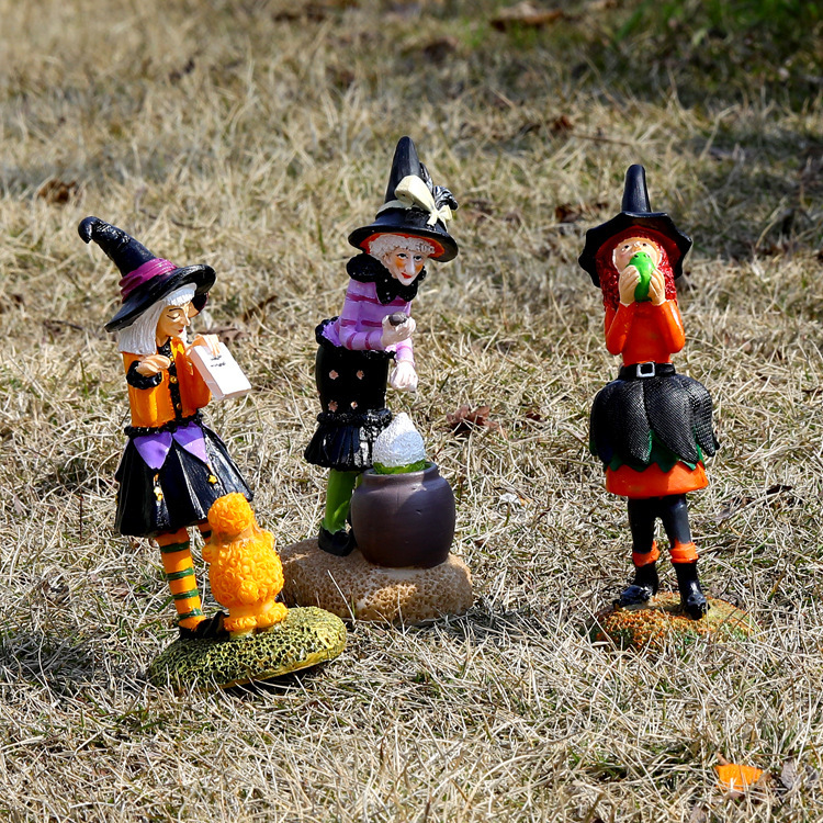 越境新品ハロウィーンプレゼント魔女人形樹脂置物屋外創意庭園園林公仔装飾品