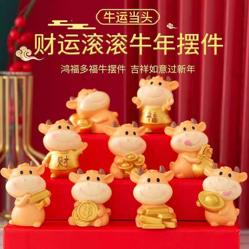 金運がもうもうとしてかわいい金牛の置物の微景観DIY盆栽のデスクトップの装飾の小さい置物の自動車の贈り物