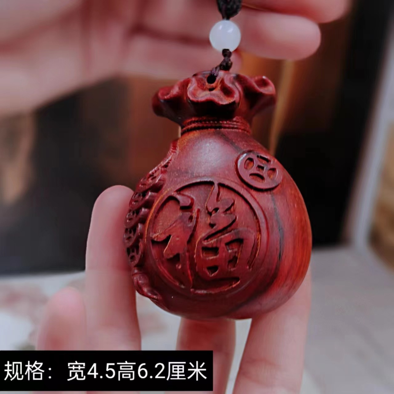 ミャンマーの小葉降真香木作精雕小銭袋ストラップとロープ木彫り文遊びプレゼント工芸