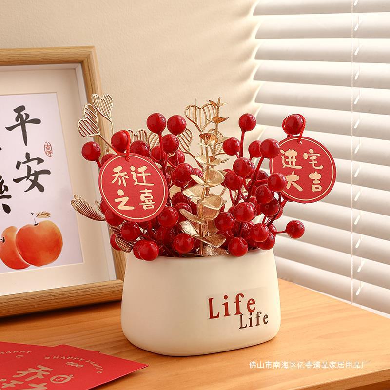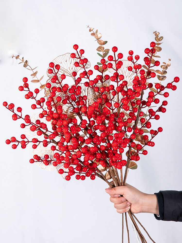 金持ちの実のシミュレーション花の置物の客間は赤い冬青の造花の新年の赤い実を飾って赤いベリーの年の夜花を飾っています。