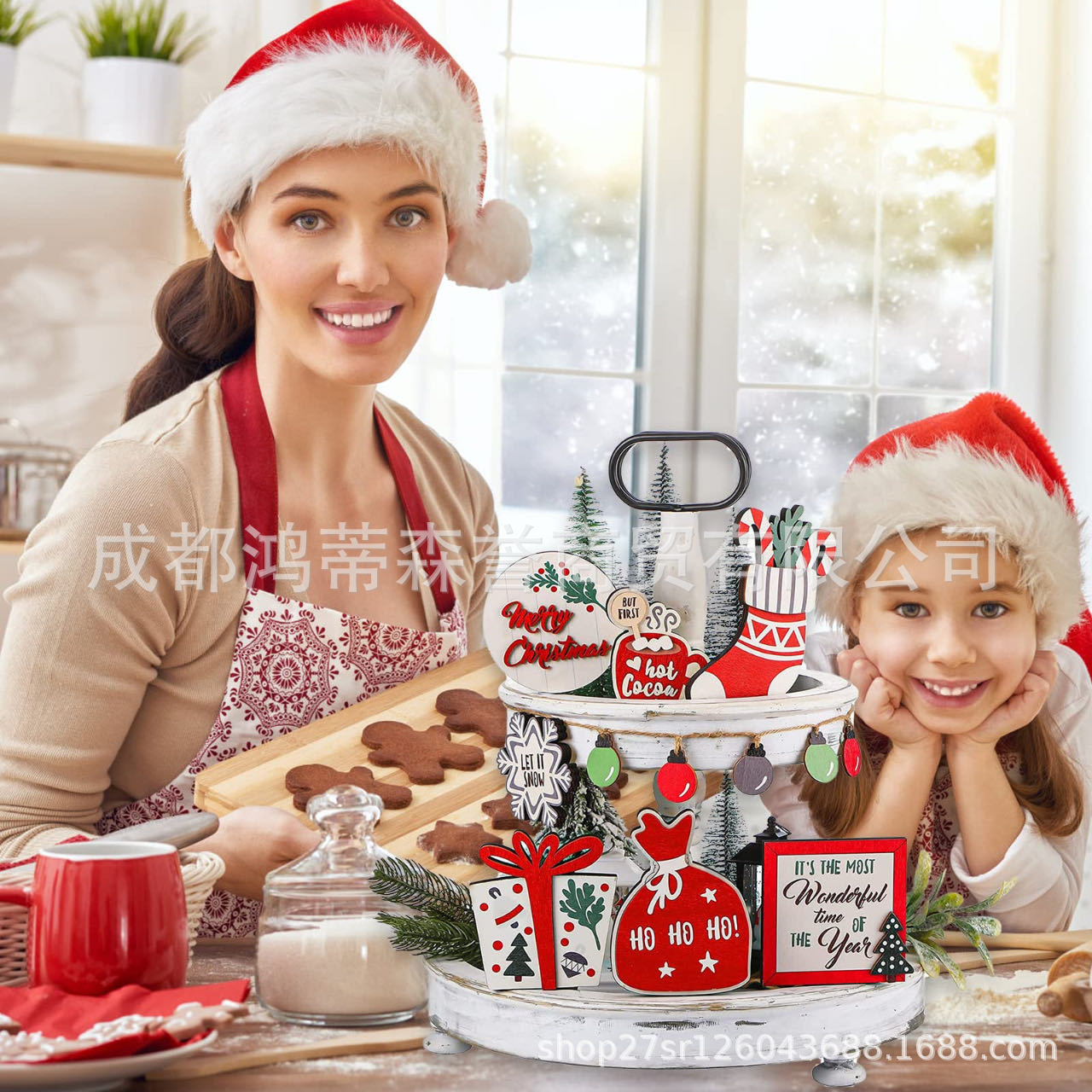 クリスマスの層のパレットの板はクリスマスの贈り物を飾って雪の贈り物のお金の袋の装飾品を飾ります。