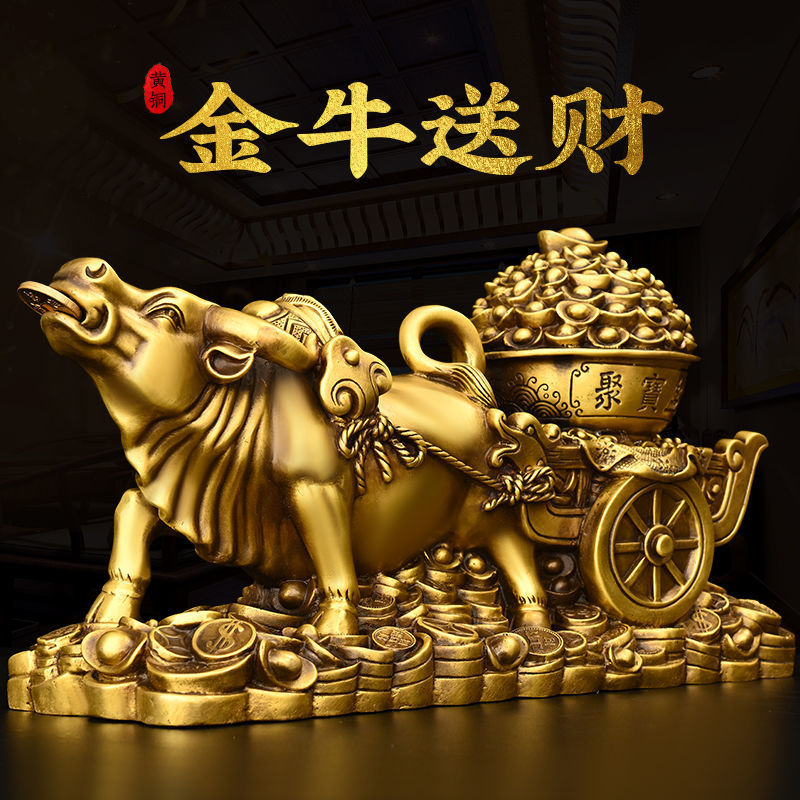 純粋な銅の牛の置物の牛は車の牛を引っ張ります。